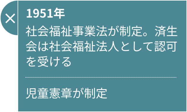 児童福祉法最低基準が公布され「児童福祉施設済生会附属乳児院」として許可。