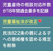 子どもへの虐待が社会問題化してきたことを受けて、児童虐待防止を目的とした「児童虐待の防止等に関する法律(児童虐待防止法)」が施行。