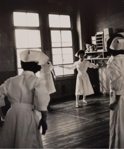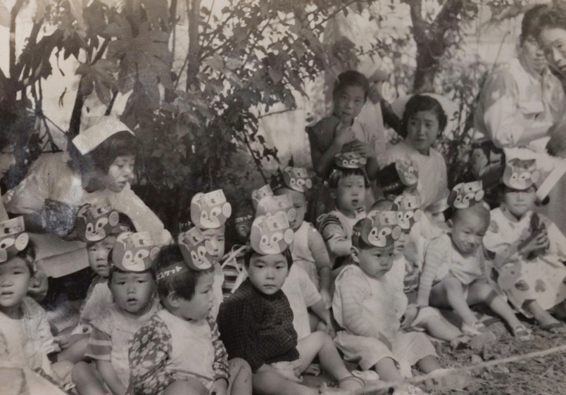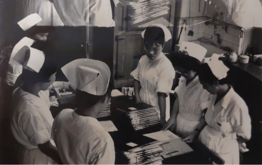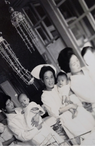 当時の職員はほとんどが看護婦(看護師)で保母(保育士)は2人のみ。保母の制服も白衣で、その上から柄のエプロンを羽織っていた。